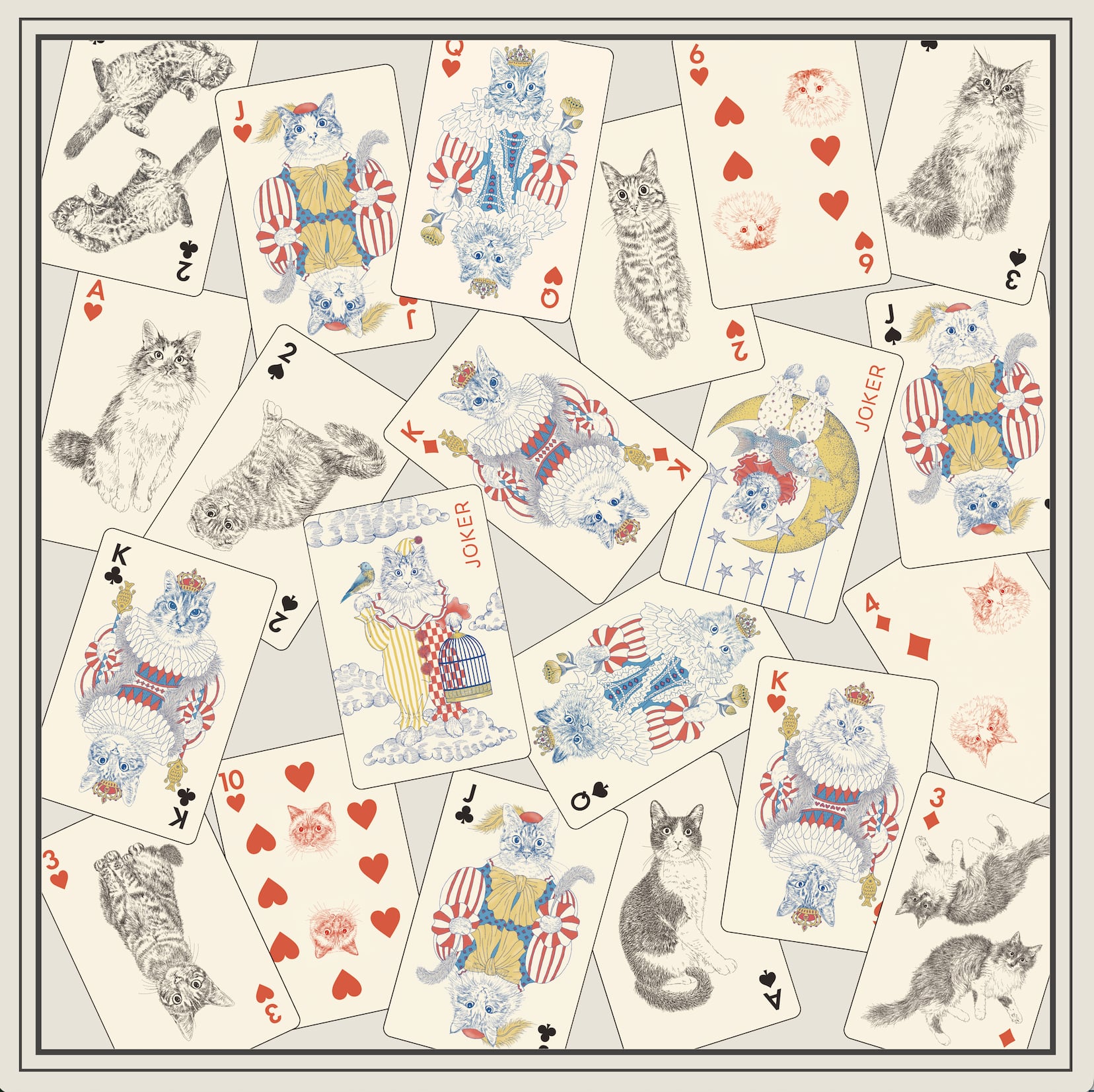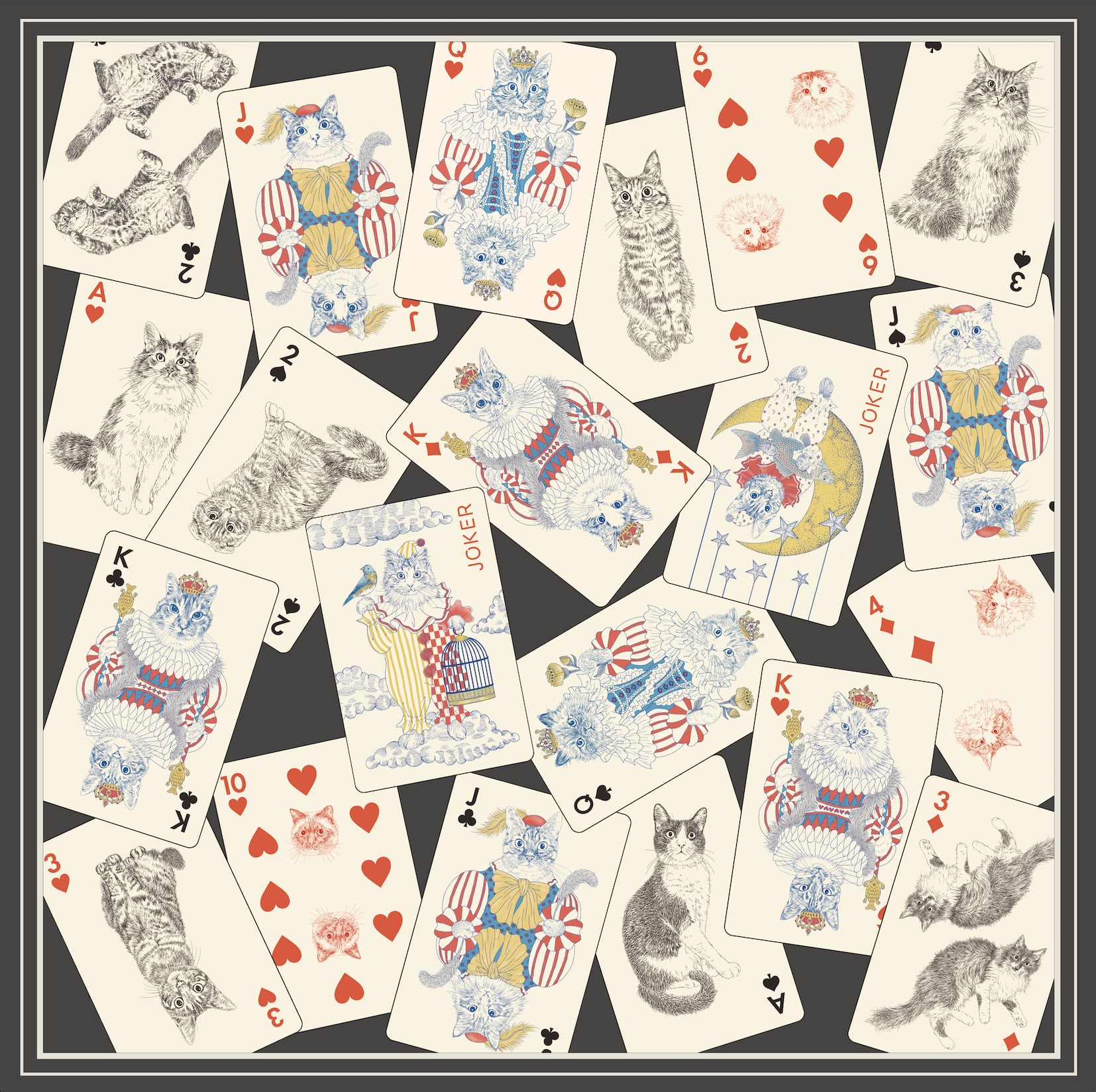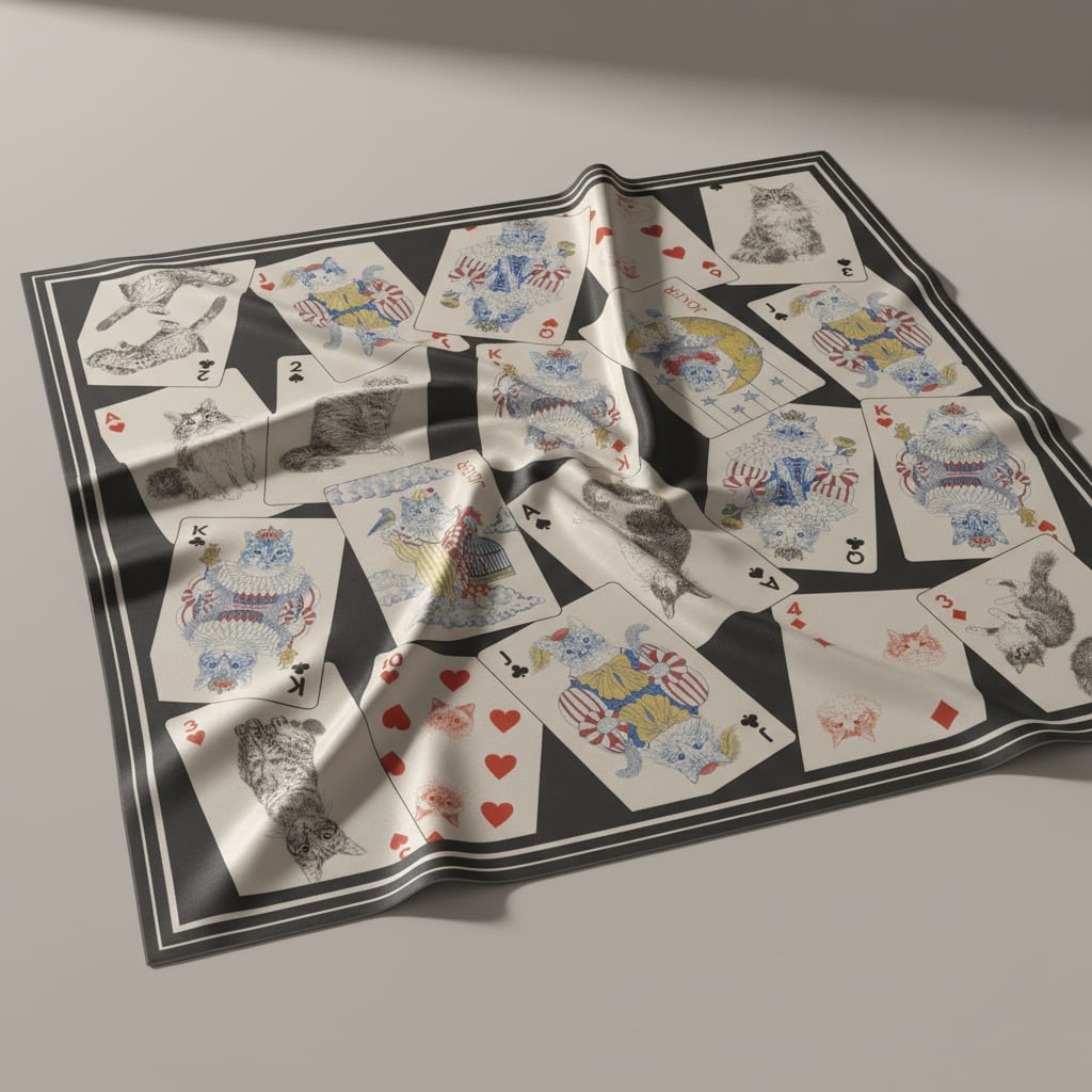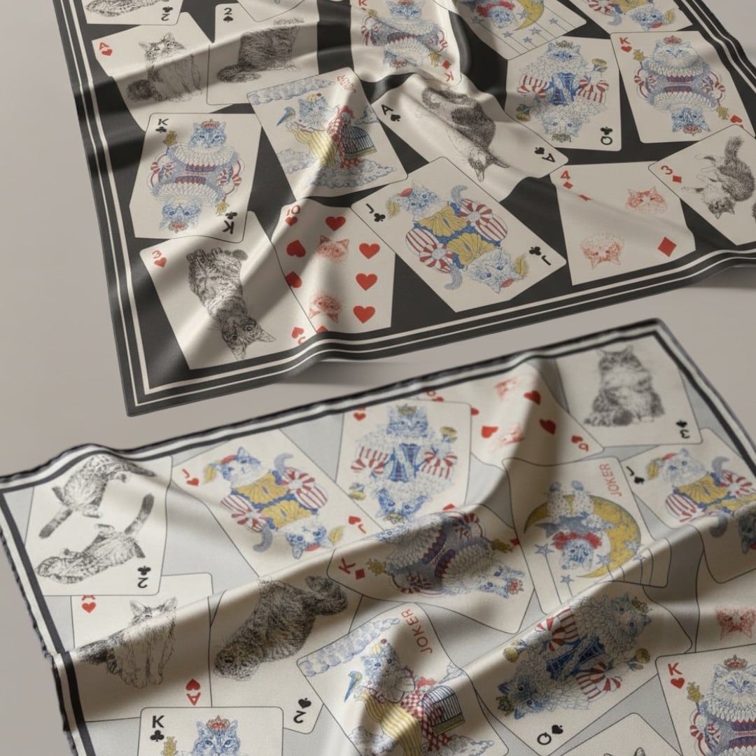 猫イラストのトランプ柄大判スカーフ/365Cat.Artオリジナルイラスト猫雑貨